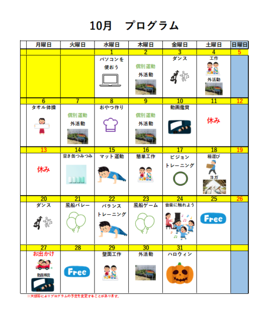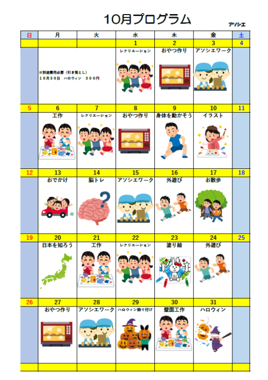 令和7年10月月間プログラム(愛キッズ川内)
